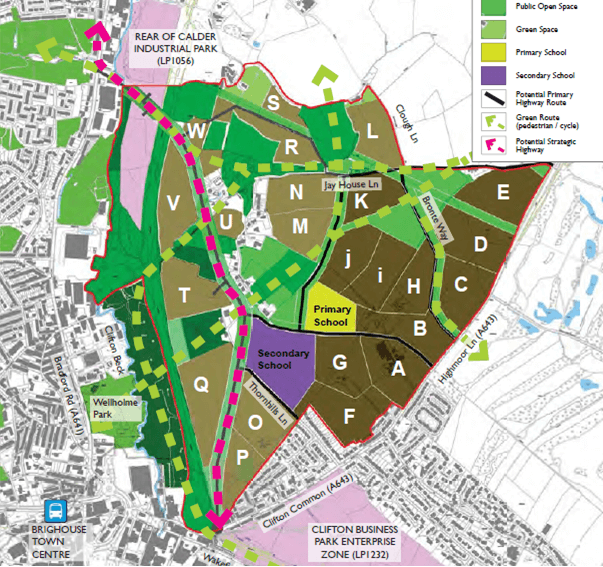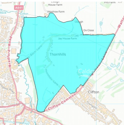 The Thornhills Lane site (Clifton Area on the map) is the largest single development proposed in the draft Calderdale Local Plan, the proposal suggests over 1,900 dwellings could be built on the site.